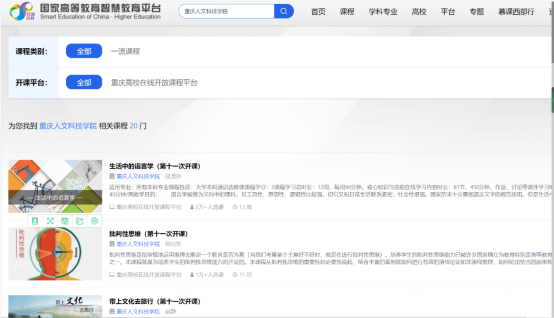 据悉,国家高等教育智慧教育平台是教育部委托建设的全国性、综合性在线开放课程平台,首批上线的2万门课程系从1800所高校建设的5万门课程中精选的优质课程,其中重庆市共有21所高校的228门课程在该平台首批上线。