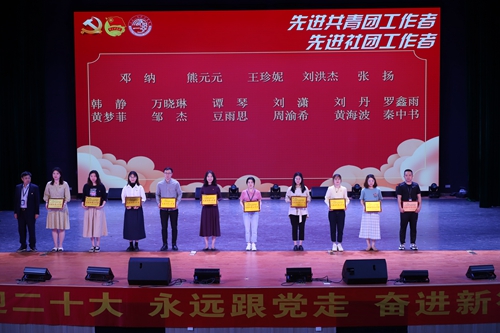 团委书记韩亮在会上宣读了《关于表彰2021-2022学年共青团系统“争优创先”先进集体和先进个人的决定》,与会领导为获奖先进集体和先进个人颁奖。