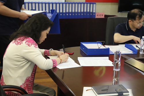随后,年检专家组对学校年检相关材料进行了认真地查阅,对相关部门负责人进行了访谈。年检专家组还召开了师生座谈会,就学校各方面建设情况听取了教职工代表的看法、意见和建议,并对师生代表进行了满意度调查。