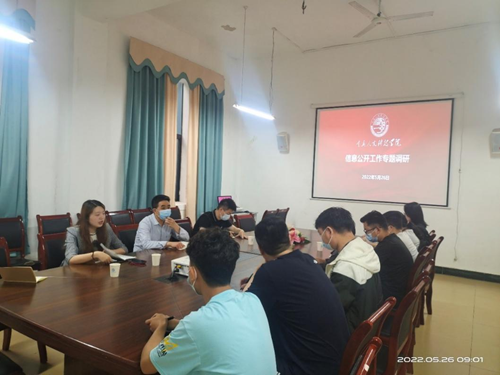 各学院汇报了本单位信息公开工作开展的情况,提出了推进落实工作中存在的问题和下一步工作方向,也结合学院实际提出了意见建议;师生代表也积极为信息公开工作建言献策。