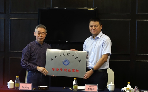 随后,张跃光、李应峰代表校企双方签订了就业基地协议,并举行了毕业生就业基地授牌仪式。