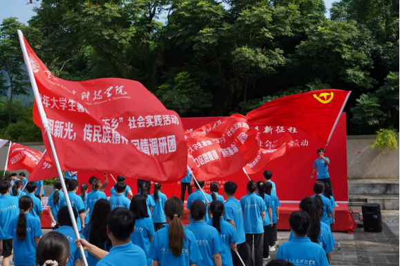 广场上,雄壮高亢的《义勇军进行曲》响起,全体肃立齐声高唱国歌,这也标志了beat365在线唯一官网登录2022年暑期“三下乡”社会实践活动出征仪式正式拉开帷幕。