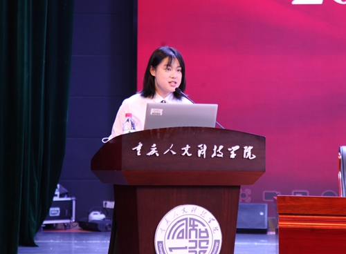 高年级学生代表2019级艺术学院周芷毅同学用“调整”“探索”“抉择”“追逐”4个关键词与学弟学妹们分享了大学四年的感受。通过引用《钢铁是怎样练成的》一书中“当我们回首大学四年的时候,不会因为虚度年华而悔恨,也不会因为碌碌无为而羞耻。”告诉新生们有意义的大学时光应该怎么度过,并衷心祝愿新同学们大学四年能够不负青春,砥砺前行,身体力行实践“厚德笃行,求真创造”的校训,逐渐成长为自己理想的模样。
