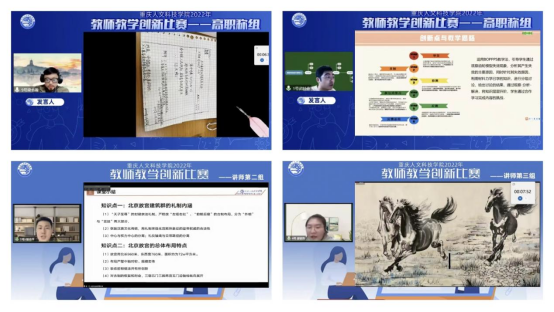 决赛环节由课堂教学展示、创新教学设计汇报两部分组成。教师们激情饱满,积极探索智慧教育新形态,运用先进的教学理念,优化教学目标,设计教学内容,创新教学方法,改革考核方式,充分展现了beat365官网教师对待教育教学的热忱,以及专业的教育教学能力,获得了观摩教师们的高度肯定。