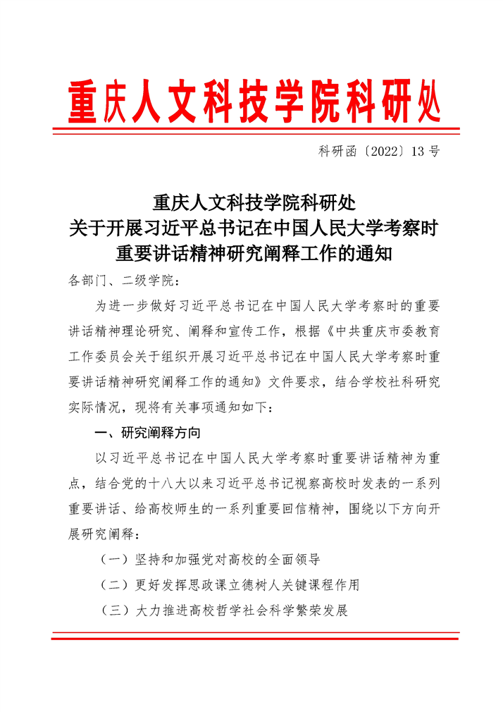【项目申报】关于开展习近平总书记在中国人民大学考察时重要讲话精神研究阐释工作的通知