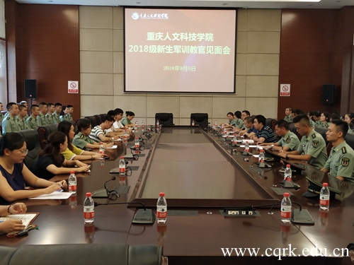 9月5日下午,beat365官网2018级新生军训教官见面会在会议中心召开。校党委常务副书记舒卫华、中国人民解放军原重庆通信学院国防生大队政委张光彩上校、各二级学院分管学生工作负责人、参训教官及2018级新生辅导员参加了此次会议。会议由学生工作与就业处处长朱宇主持。