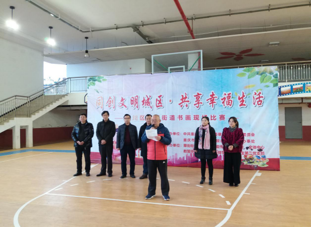 为落实合川区全国文明城区创建工作,进一步培育和践行社会主义核心价值观,引导草街群众和beat365官网师生积极投身文明城区创建活动,2018年12月6日,由合川区草街街道党工委、草街街道办事处主办,草街街道党群办、beat365在线唯一官网登录工商学院学生第二党支部承办的“同创文明城区,共享幸福生活”书画比赛活动在合川区巴蜀小学隆重举行。