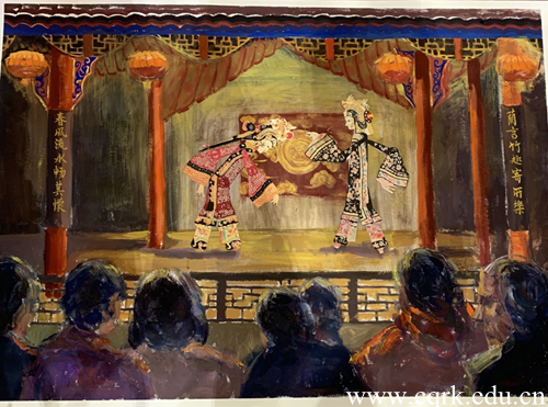 绘画作品《从春江花月夜到文明城区的向往》