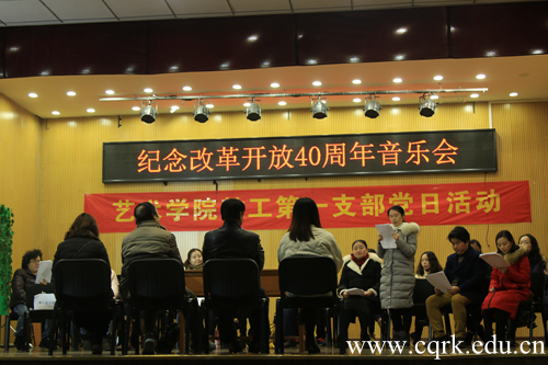 12月19日,艺术学院教工第一党支部在学校小音乐厅举行党日活动,以音乐会的形式纪念改革开放40周年。校长何向东,艺术学院党政领导以及教工第一党支部成员参加了此次活动。活动由教工第一党支部书记赵彬主持。
