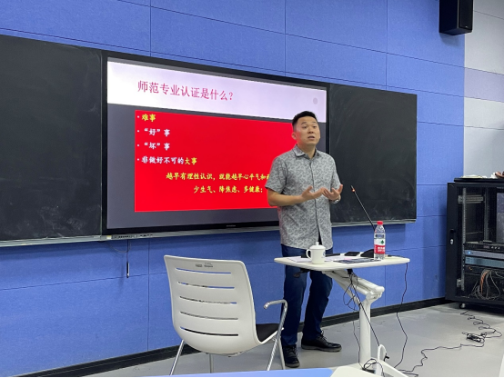 培训会上,唐瑞梁从国家宏观层面到学校办学层面,强调了师范教育质量提升的重要性,同时从师范专业建设存在突出问题分析、师范类专业质量保障体系、师范类专业认证“以学生为中心、产出导向教育、持续质量改进”理念以及师范类专业认证体系与标准等四个方面对师范类专业认证及评建路径作了详细的解读。