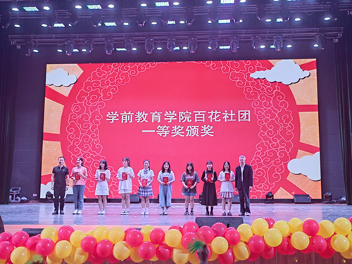 为了隆重庆祝中国共产党成立100周年,宣传党和国家的学前教育方针政策,展示学院第一课堂和第二课堂的教学成果,表彰学前学子在专业技能上取得的进步。6月18日晚,学前教育学院在行知艺术中心举办2020-2021学年“百年铭初心,童心共奋进”专业教学成果汇报展演暨百花社团颁奖晚会。校长张跃光,校长助理双海军,合川区新华幼儿园园长杨锐,副园长何娟、杨燕、董培,学前教育学院党政领导及各二级学院师生代表共600人参加晚会。