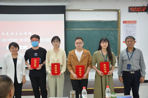 经过激烈角逐,最终教师孙碧晨和冯懿获比赛一等奖,覃德强、李衫衫、张雅妍、李博文四位教师获比赛二等奖。校长助理双海军,马克思主义学院院长张国容、直属党支部副书记傅小珮为获奖教师颁发荣誉证书。