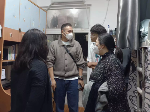 九三学社社员、合川区政协常委、建筑与设计学院副院长孙磊(图左二)深入学生社区,走访了学生宿舍,了解疫情期间学生的思想动态、学习生活状况,为同学们传达疫情防控政策、讲清疫情防控举措、解决生活难题,还与部分同学进行“一对一”交流。让同学们在寒冷的冬日感受到了学校学院的关怀和温暖。