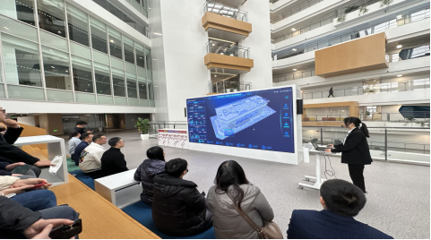 研讨会开始前,广联达公司况诗文带领大家参观了广联达西安数字建筑研发基地。据了解,该基地是广联达集自身多年建设项目管理实践经验,践行“数字理念”打造的项目的集绿色、健康、智能、舒适于一体的科研办公建筑,目前是西安最大的研发、实践和展示基地。