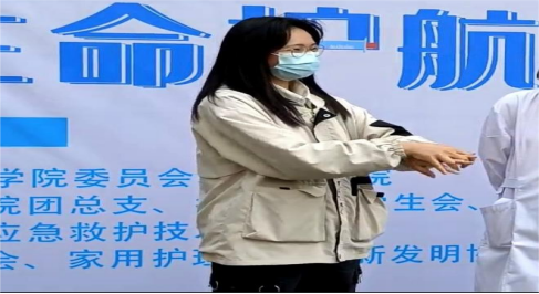 本次活动共分为3个部分:一是七步洗手法的展示与教学;二是应急救护知识宣讲与技能培训,其中包括海姆立克急救法、心肺复苏操作;三是应急救护知识答题。活动现场,老师和同学们井然有序的模拟救护场景,对伤员进行细致的人文关怀,为师生带来了一场别开生面的应急救护课程。